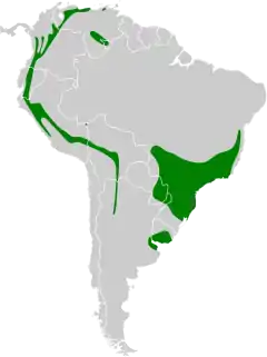 - P. m. venezuelensis (Sclater, PL, 1857), que habita a encosta leste da Cordilheira dos Andes e áreas próximas, na Venezuela, Colômbia, Equador, Peru, Bolívia e Argentina.