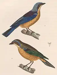 - Swainson, William (1827). «On several groups and forms in ornithology, not hitherto defined». Zoological Journal (em inglês). 3. pp. 158-175 [173]