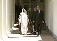 Sabah al-Ahmad al-Jabir al-Sabah com o presidente norte-americano George Walker Bush na Casa Branca.