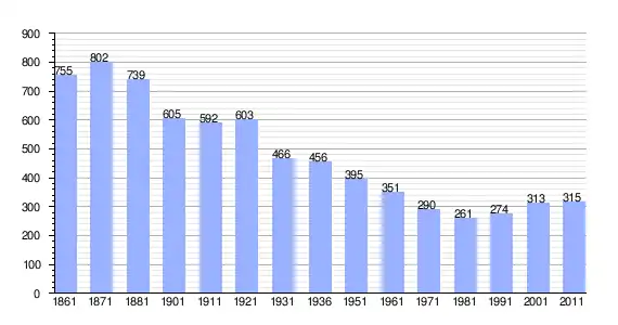 | Variação demográfica do município entre 1861 e 2011[3] |