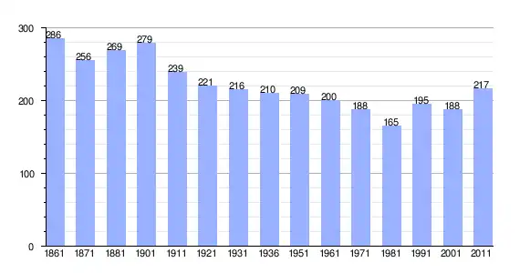 | Variação demográfica do município entre 1861 e 2011[3] |