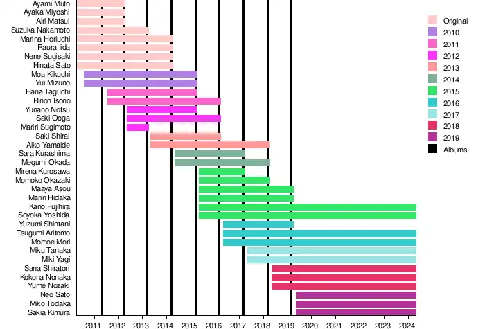 | Sara Kurashima | 倉島颯良 | くらしま さら | 24 de fevereiro de 2002 (22 anos) | Ibaraki | 2014 | 25 de março de 2017 |