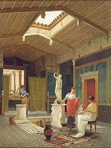 Nas casas abastadas da Grécia Antiga, cerca de 500 a 300 a.C., a divisão mais importante era o andron, que servia tanto como sala de convívio como de jantar, e onde era normalmente feito o symposion, uma reunião entre os donos da casa e os convidados, onde se consumiam bebidas alcóolicas. Era habitualmente a divisão mais mobilada da casa, estando equipada com sofás onde os convivas se reclinavam, e ao lado dos quais eram colocadas pequenas mesas para os alimentos.[19] Com os romanos a sala de estar voltou a ser apenas uma divisão própria, o Átrio (atrium), onde se situava um tanque central alimentado pelas águas da chuva, que escorriam do telhado por uma grande abertura, que também servia para fornecer iluminação natural. Neste local encontrava-se igualmente o altar aos deuses penates, que protegiam a casa. O mobiliário também era esparso mas de grande qualidade, com sofás, cadeiras de verga, e pequenas mesas.[20] Já os povos Celtas da Europa Setentrional viviam com muito menos ostentação, em casas de planta circular com uma só grande divisão no interior, geralmente organizada em torno de uma fogueira.[21]