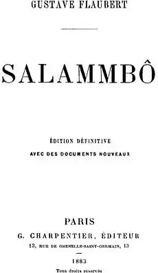 Salammbô é o título de um romance histórico de Gustave Flaubert, publicado pela primeira vez em 1862, cujo enredo reconstitui a vida na antiga Cartago.