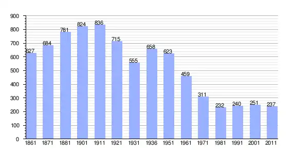 | Variação demográfica do município entre 1861 e 2011[3] |