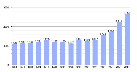 | Variação demográfica do município entre 1861 e 2011[3] |