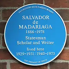 Salvador de Madariaga y Rojo (La Coruña, 23 de julho de 1886[1][2] — Locarno, 14 de dezembro de 1978) foi um político, diplomata e escritor espanhol. Foi ministro da Instrução Pública e Belas Artes em 1934, e ministro da Justiça da Segunda República Espanhola. De pensamento liberal[3] e europeísta, exilou-se no Reino Unido após o início da Guerra Civil Espanhola. Durante a Guerra Fria foi um ativo militante contra o comunismo soviético, bem como opositor da ditadura franquista; só regressou a Espanha depois da morte de Franco. Membro de número da Real Academia Espanhola e da Real Academia de Ciências Morais e Políticas, como escritor cultivou diversos géneros: ensaio histórico e político, crítica literária, novela, biografia e poesia, entre outros.