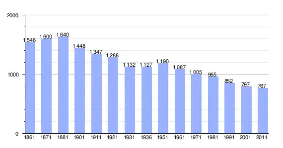 | Variação demográfica do município entre 1861 e 2011[3] |