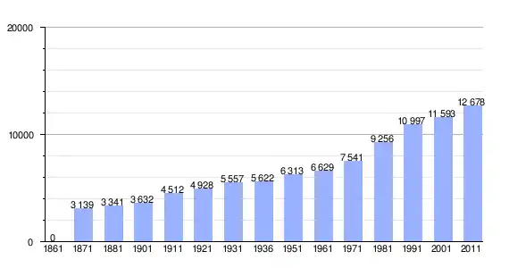 | Variação demográfica do município entre 1861 e 2011[3] |