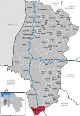 | Localização de Salzbergen no distrito de Emsland | |