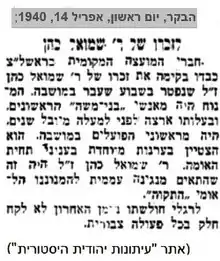 - [Obituário Samuel Cohen, Jornal Haboker Palestine, 14 de abril de 1940]