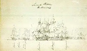 Afundou em 29 de outubro após ter sido incendiado pelos ingleses na ausência de possibilidades para rebocá-lo.