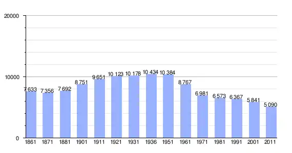 | Variação demográfica do município entre 1861 e 2011[3] |