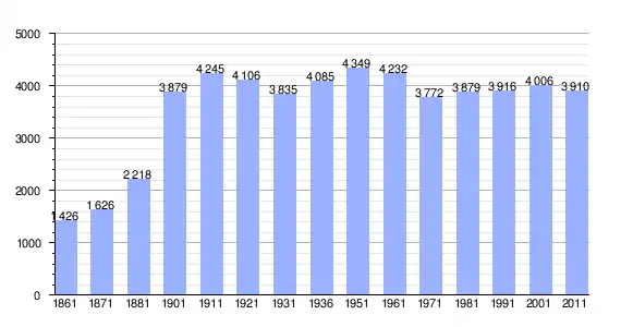 | Variação demográfica do município entre 1861 e 2011[3] |