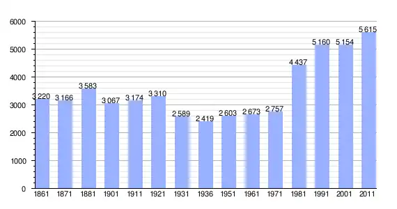 | Variação demográfica do município entre 1861 e 2011[3] |