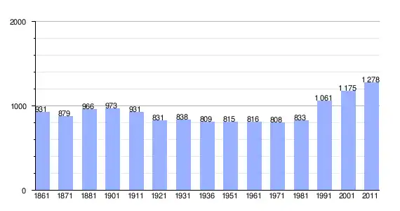 | Variação demográfica do município entre 1861 e 2011[3] |