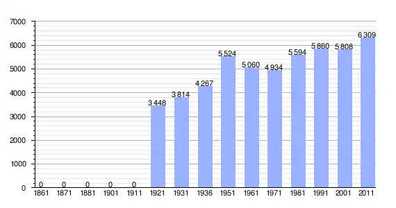 | Variação demográfica do município entre 1861 e 2011[3] |