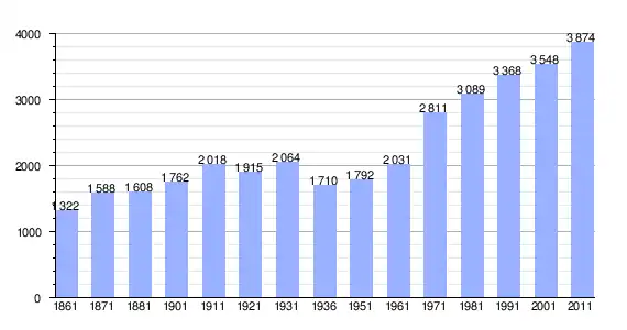 | Variação demográfica do município entre 1861 e 2011[3] |