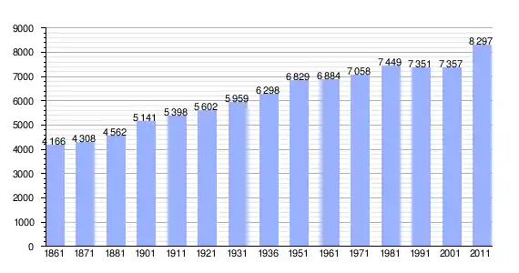 | Variação demográfica do município entre 1861 e 2011[3] |