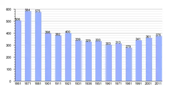 | Variação demográfica do município entre 1861 e 2011[3] |