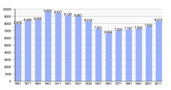 | Variação demográfica do município entre 1861 e 2011[3] |