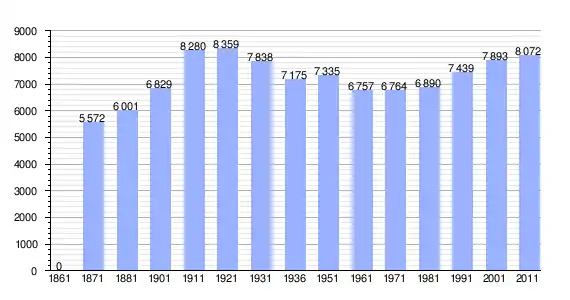 | Variação demográfica do município entre 1861 e 2011[3] |