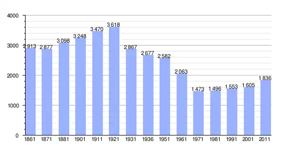 | Variação demográfica do município entre 1861 e 2011[3] |