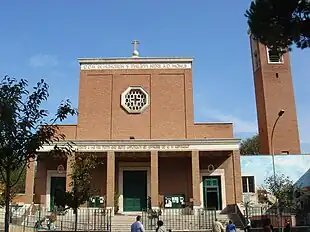 A igreja é uma estrutura de tijolos com um pórtico e um campanário laterial. No entablamento que corre acima do pórtico está impresso versículo «Vinde a mim todos os que andais em trabalho e vos achais carregados, e eu vos aliviarei» (Mateus 11:28). No alto da fachada está inscrita a dedicatória: "D.O.M. in honorem S. Philippi Nerii A.D. MCMLII". No flanco da igreja está pintado um mural de 1996 representando São Filipe Néri.