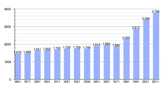 | Variação demográfica do município entre 1861 e 2011[3] |