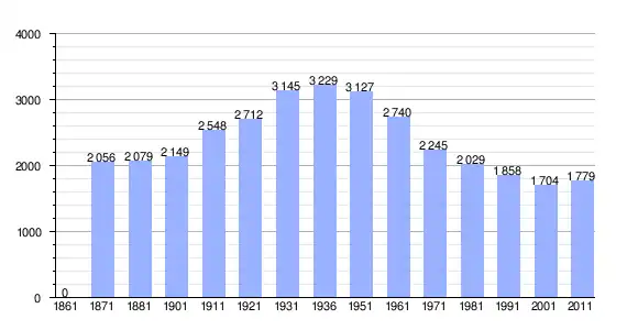 | Variação demográfica do município entre 1861 e 2011[3] |