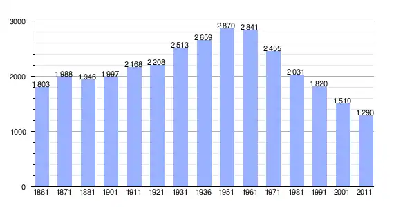 | Variação demográfica do município entre 1861 e 2011[3] |