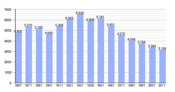 | Variação demográfica do município entre 1861 e 2011[3] |