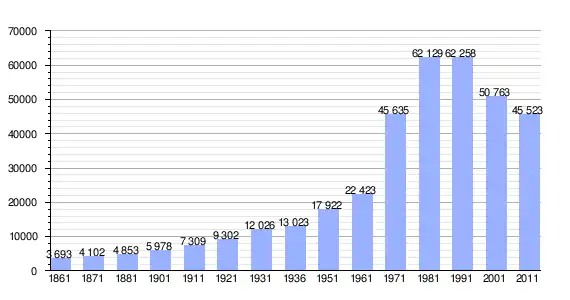 | Variação demográfica do município entre 1861 e 2011[3] |