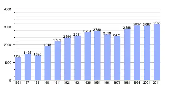 | Variação demográfica do município entre 1861 e 2011[3] |
