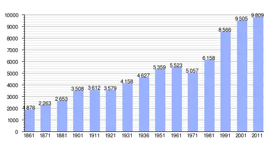 | Variação demográfica do município entre 1861 e 2011[3] |