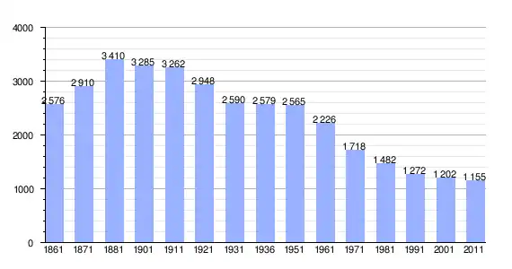 | Variação demográfica do município entre 1861 e 2011[3] |