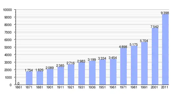 | Variação demográfica do município entre 1861 e 2011[3] |