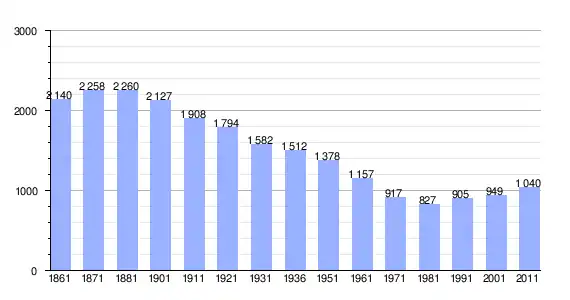 | Variação demográfica do município entre 1861 e 2011[3] |
