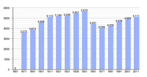 | Variação demográfica do município entre 1861 e 2011[3] |