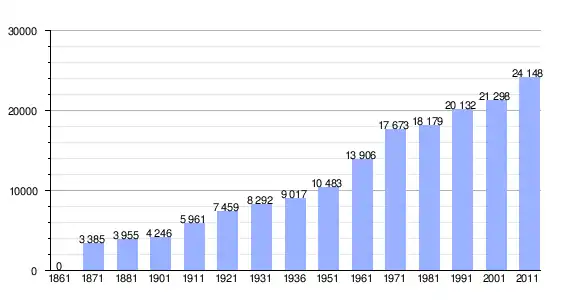 | Variação demográfica do município entre 1861 e 2011[3] |