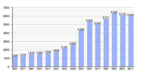 | Variação demográfica do município entre 1861 e 2011[3] |