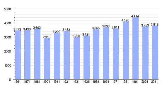 | Variação demográfica do município entre 1861 e 2011[3] |