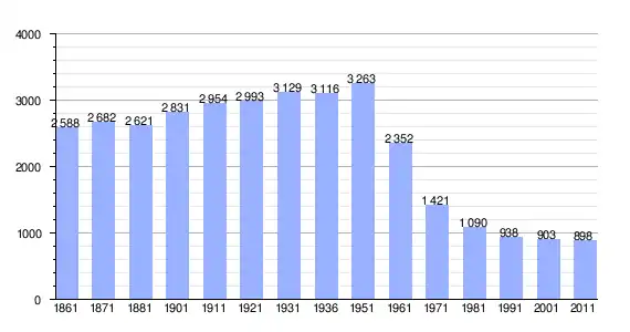 | Variação demográfica do município entre 1861 e 2011[3] |