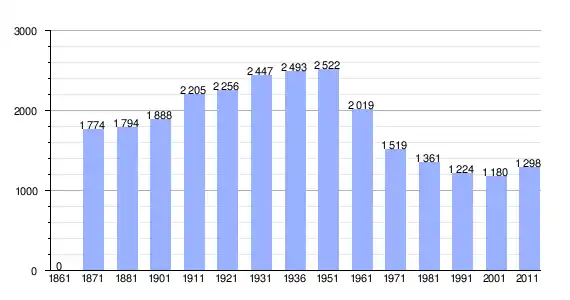 | Variação demográfica do município entre 1861 e 2011[3] |
