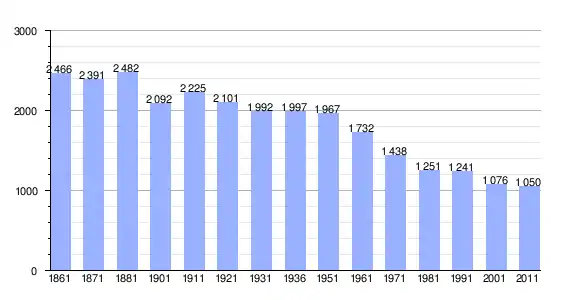 | Variação demográfica do município entre 1861 e 2011[3] |