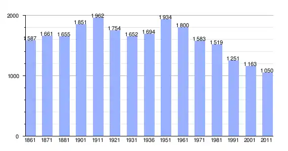 | Variação demográfica do município entre 1861 e 2011[3] |