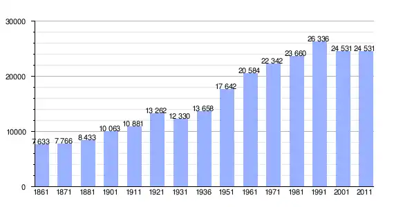 | Variação demográfica do município entre 1861 e 2011[3] |