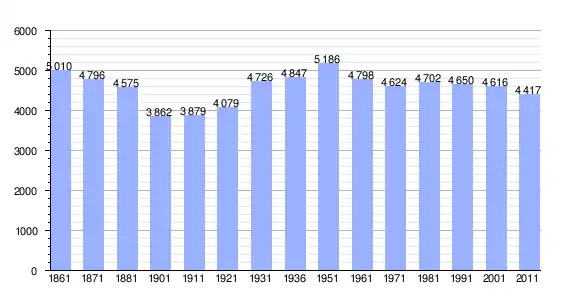 | Variação demográfica do município entre 1861 e 2011[3] |