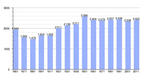 | Variação demográfica do município entre 1861 e 2011[3] |