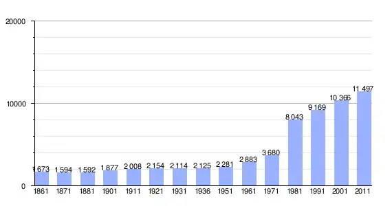 | Variação demográfica do município entre 1861 e 2011[3] |